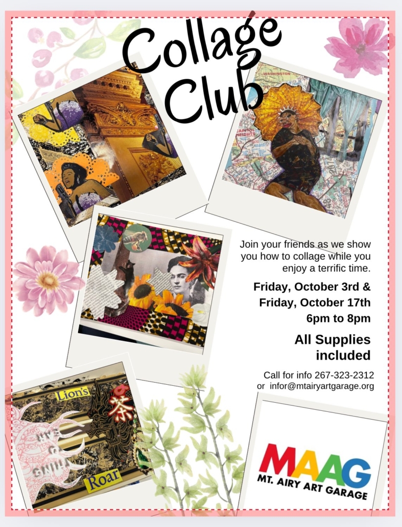 Collage sessions are on the following Fridays: October 3 & 17 from 6-8 PM.